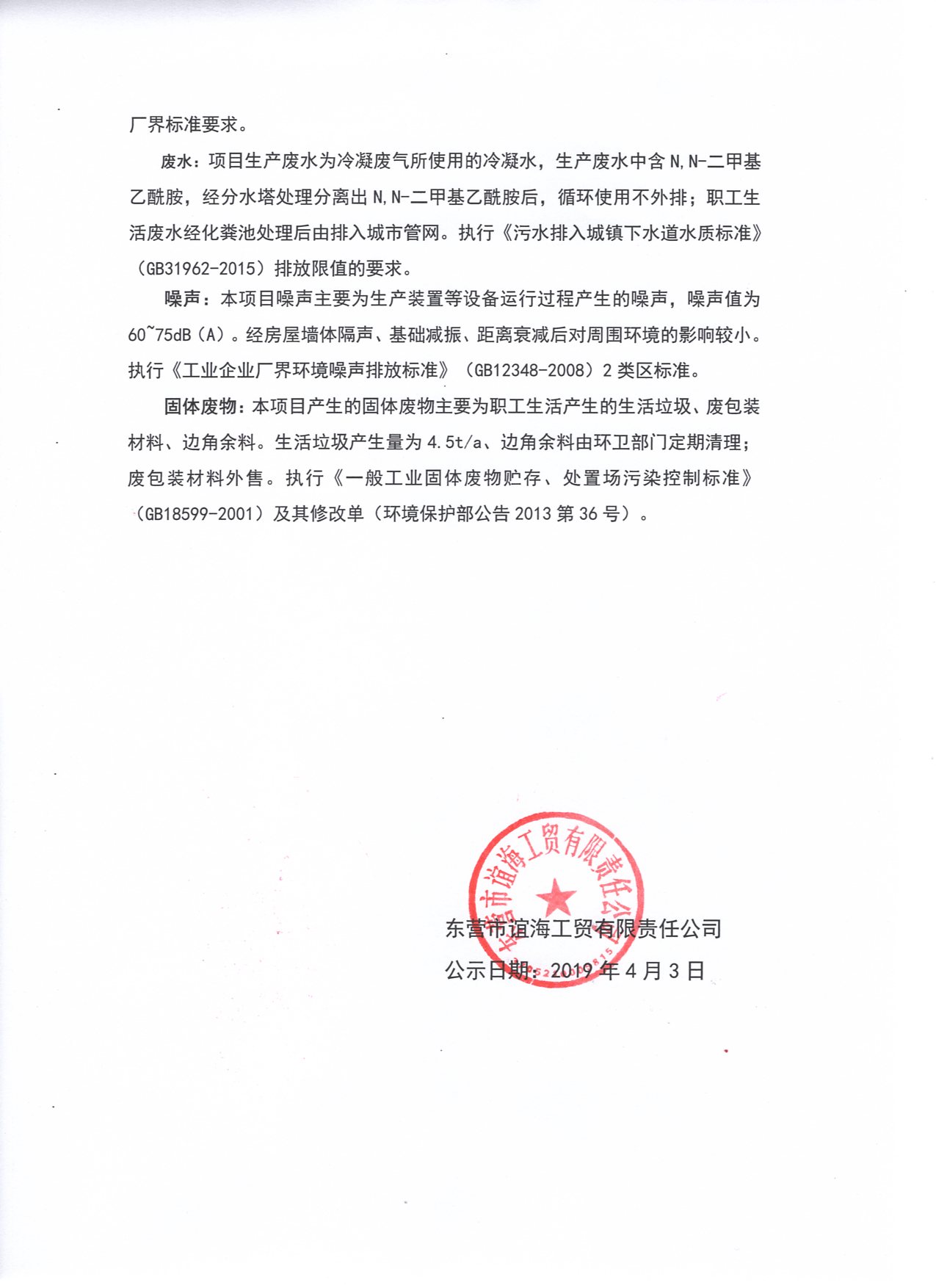 起止日期公開: 東營(yíng)市誼海工貿(mào)有限責(zé)任公司于2016年8月9日取得《東營(yíng)市誼海工貿(mào)有限責(zé)任公司1000t/a高新電子絕緣材料項(xiàng)目環(huán)境影響報(bào)告表》的批復(fù)(墾環(huán)建審 [2016]036號(hào))。 東營(yíng)市誼